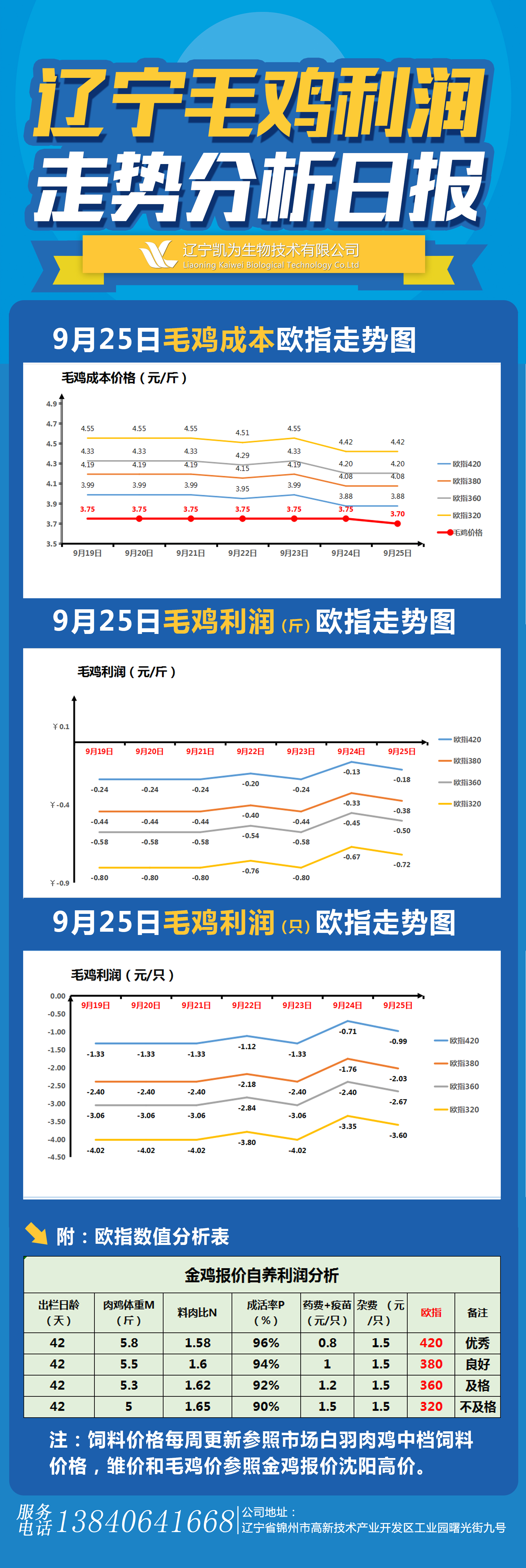 9月25日遼寧地區(qū)毛雞利潤走勢分析圖