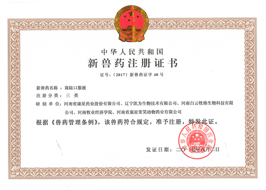 企業(yè)在發(fā)展過程中,十分重視知識產(chǎn)權(quán)和科研成果的保護工作,目前公司共有4項發(fā)明專利,1項國家三類新獸藥證書。為表彰我公司在科研工作中做出的突出貢獻,錦州市科技局認定我公司為2015年錦州市科技創(chuàng)新型中小企業(yè)。