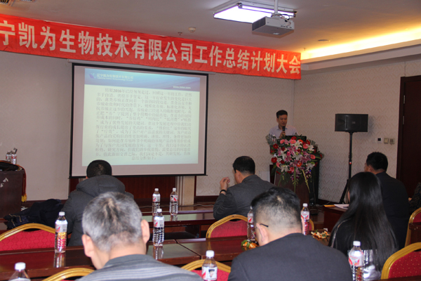 2017年1月6日下午,寒冷冬日,暖陽高照,美麗的渤海之濱錦州,遼寧凱為生物技術(shù)有限公司2016年工作總結(jié)和2017年工作計(jì)劃大會在華信大廈會議廳隆重舉行,遼寧凱為自2005年創(chuàng)建以來,歷時11年的發(fā)展歷程,我們積累了經(jīng)驗(yàn),也展示了多年的成果,展望2017年未來的發(fā)展重點(diǎn)和方向,現(xiàn)在,凱為人踏著夢想而來,滿載而歸。未來,凱為人堅(jiān)定地為公司添磚加瓦、壘筑高臺,讓夢想更加豐滿,讓基業(yè)更加長青。整個會議歷時三個小時,包括總經(jīng)理王鐵良先生作年度工作總結(jié)、計(jì)劃報(bào)告,銷售部總經(jīng)理趙福寬先生作銷售部年度工作總結(jié)、計(jì)劃報(bào)告,優(yōu)秀員工表彰等環(huán)節(jié)。會議進(jìn)行中,掌聲數(shù)次響起,整個會場始終洋溢著振奮、進(jìn)取、熱烈的氣氛,精彩紛呈,亮點(diǎn)鮮明。