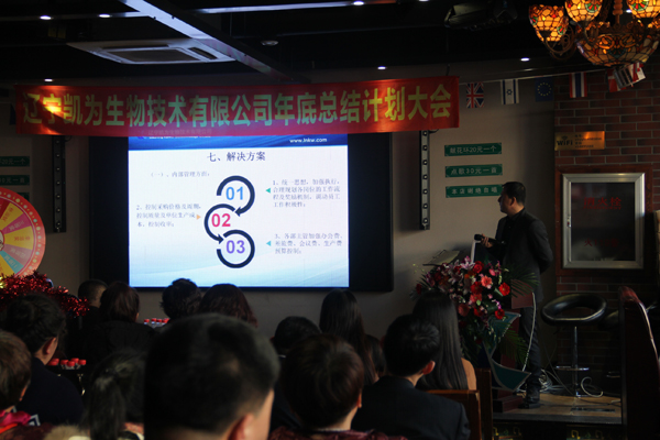 2018年1月8日,遼寧凱為生物技術(shù)有限公司2017年年度總結(jié)、表彰及2018年年度計(jì)劃大會(huì)在錦州西部音樂烤場(chǎng)一樓宴會(huì)大廳隆重召開。 公司全體員工參加了此次會(huì)議。