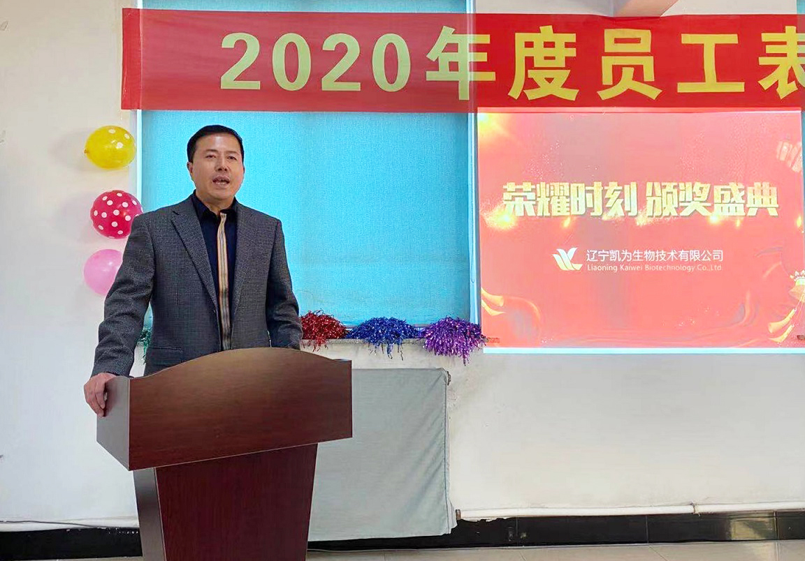 2021年1月9日,遼寧凱為生物技術(shù)有限公司2020年員工表彰大會于公司總部會議室成功召開,公司各級領(lǐng)導及全體員工應邀參會。表彰大會首先由公司總經(jīng)理王鐵良致2021年新年賀詞,隨后分別頒發(fā)了生產(chǎn)部優(yōu)秀員工獎、六年貢獻獎、十年貢獻獎和行政優(yōu)秀員工獎四個獎項。