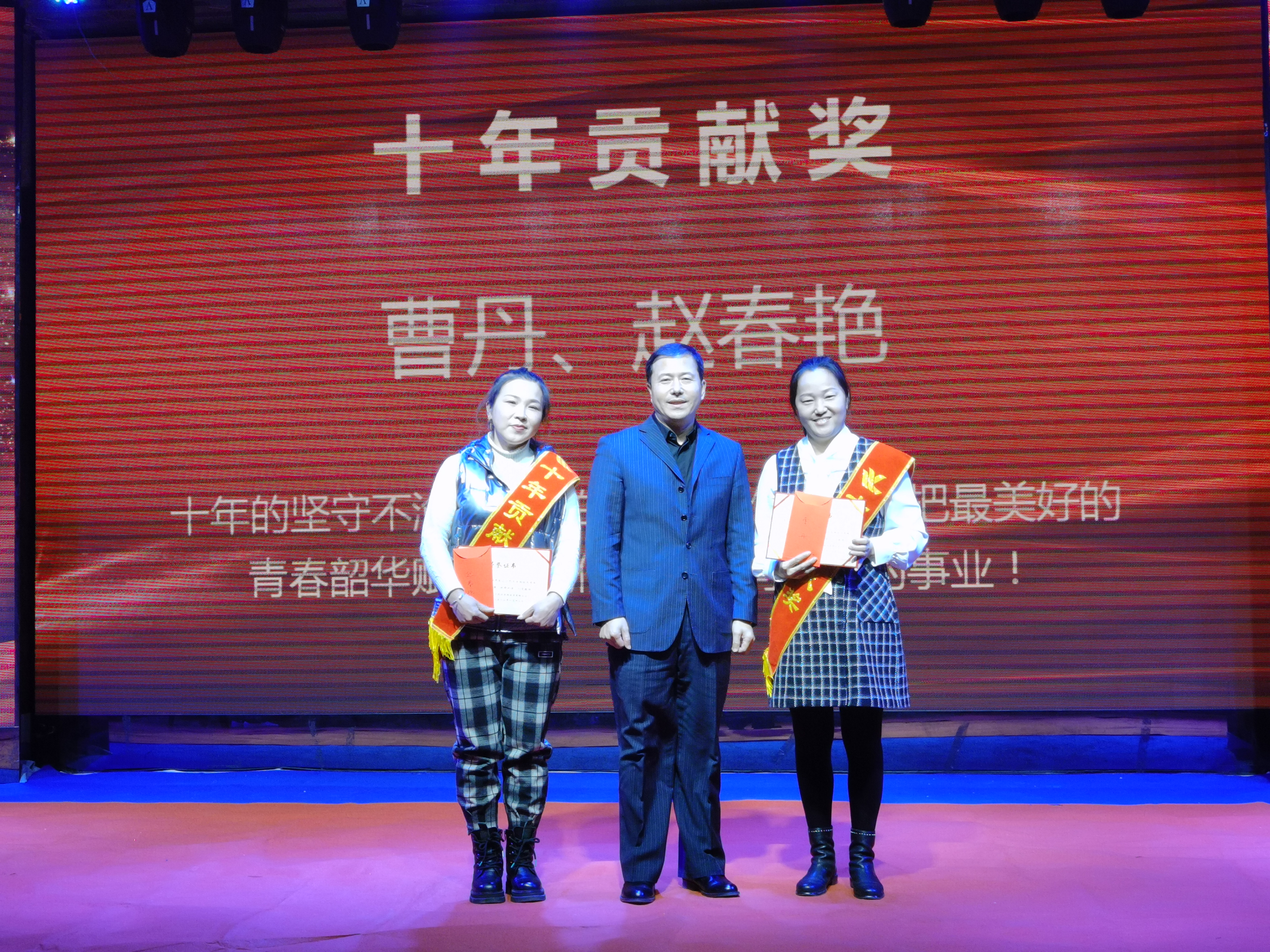 曹丹、趙春燕獲得十年貢獻(xiàn)獎,十年的堅守不渝,十年的默默耕作,們把最美好的青春韶華賦予了我們?yōu)橹餐瑠^斗的事業(yè),十年如一日們時刻心系企業(yè)的憂患,與企業(yè)同風(fēng)雨共命運(yùn)。公司總裁王鐵良為獲獎?wù)?/span>頒獎。